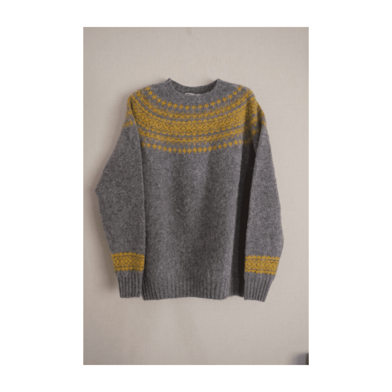 ミディアムグレーをベースに、“Sunshine”イエローのヨーク柄を配したフェアアイル調ジャカード。
